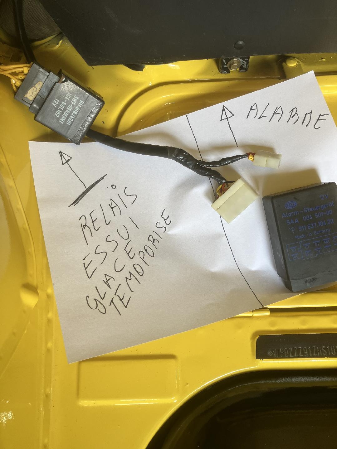 Remontage de tout le système de chauffage et vous pouvez remarquer la présence de mes fiches sur la gauche . Une fiche qui raccorde le relais temporisé des essuie glaces et une autre qui concerne le boitier relais d'alarme . Décision prise , non par facilité mais par choix , je vais supprimer l'usage de ce relais . Certains diront oui mais il faut pas ........... si , il y aura bien plus simple pour ne pas se faire voler la voiture . L'explication pour cette neutralisation arrive .