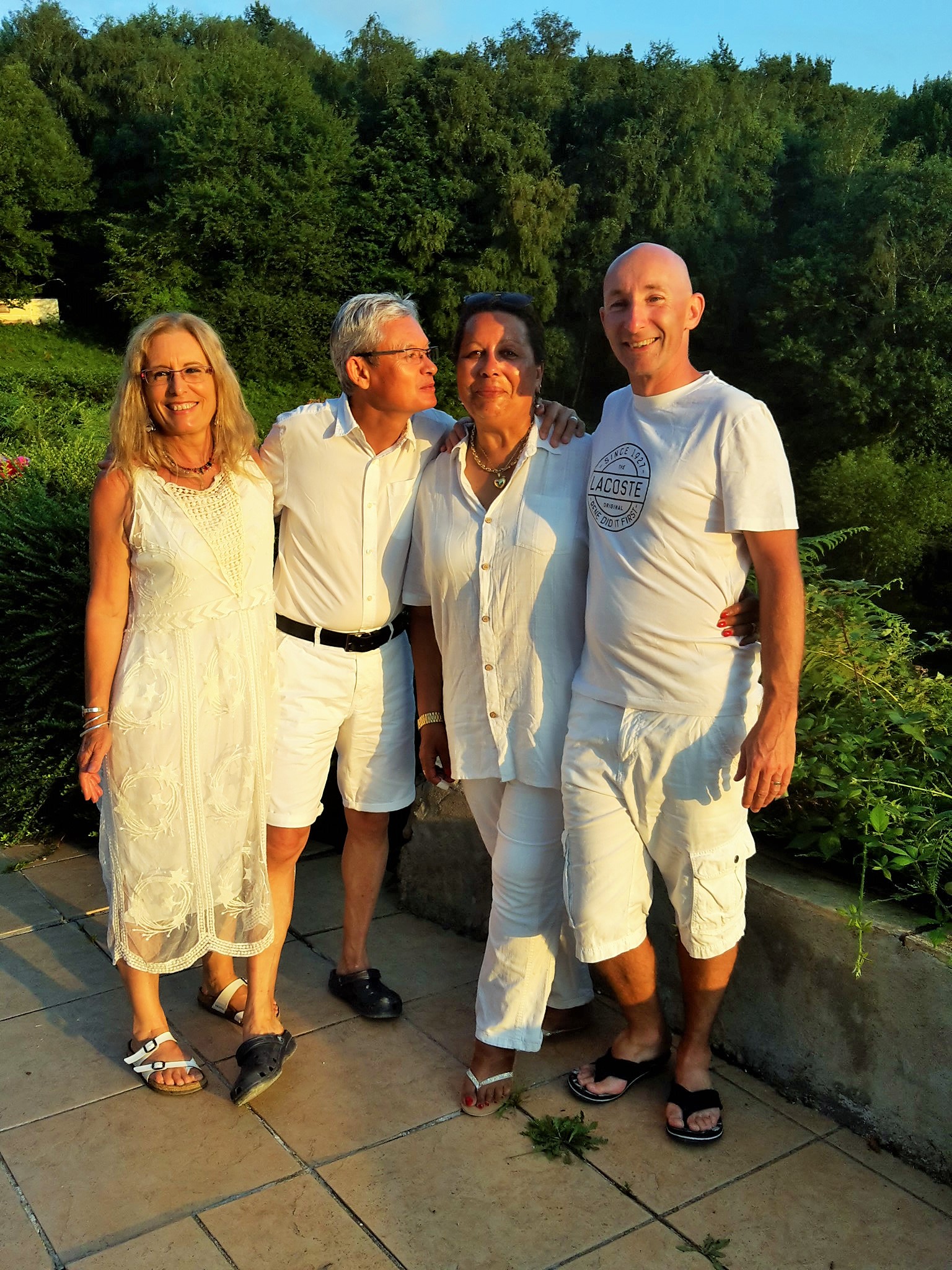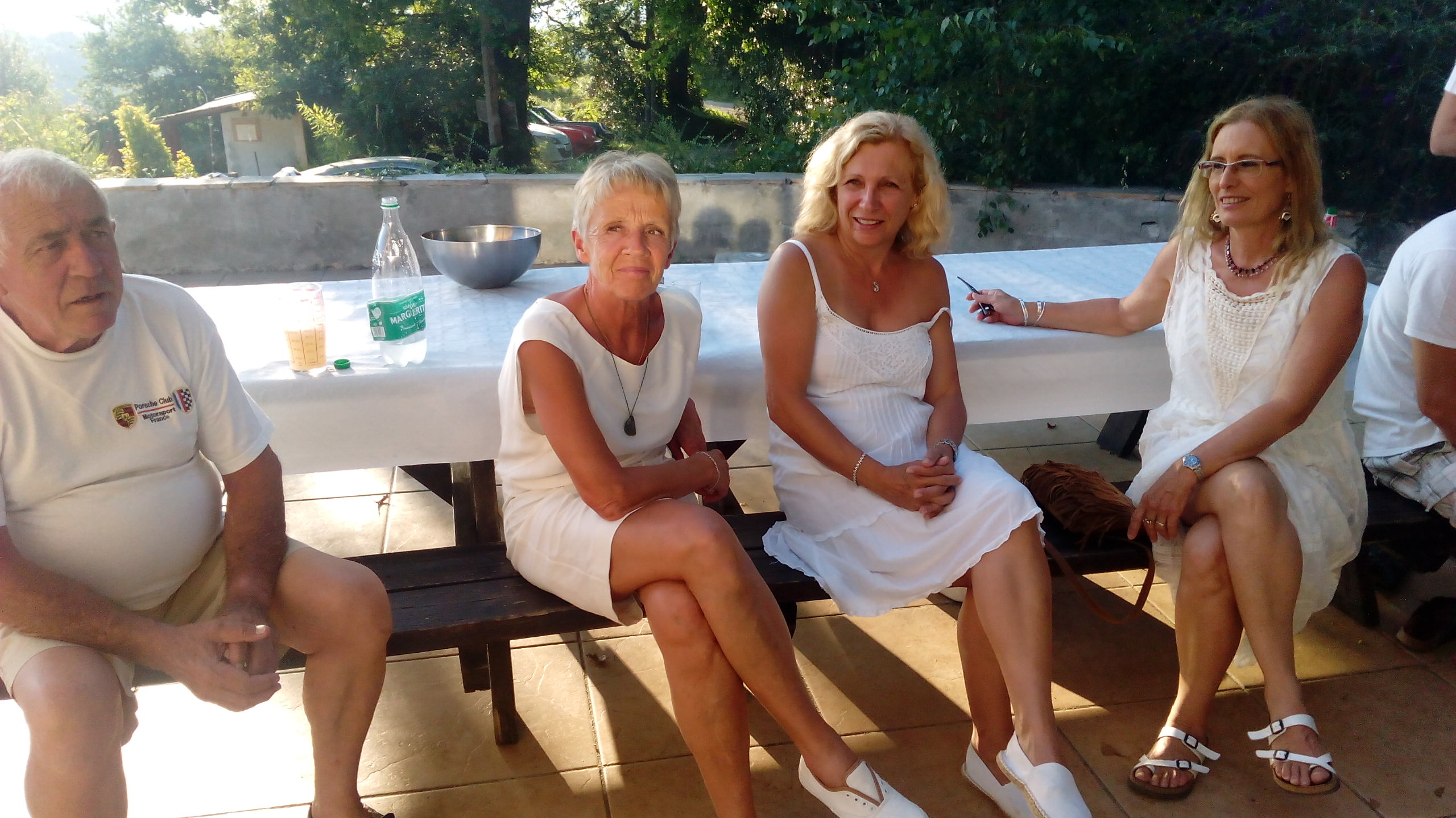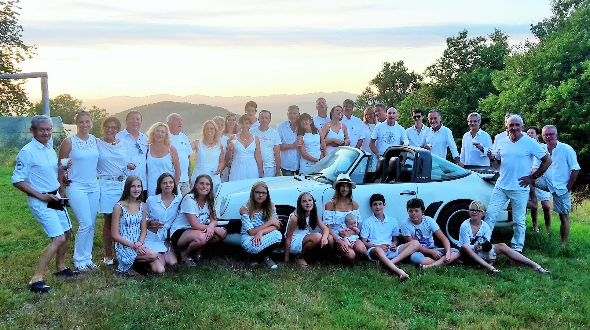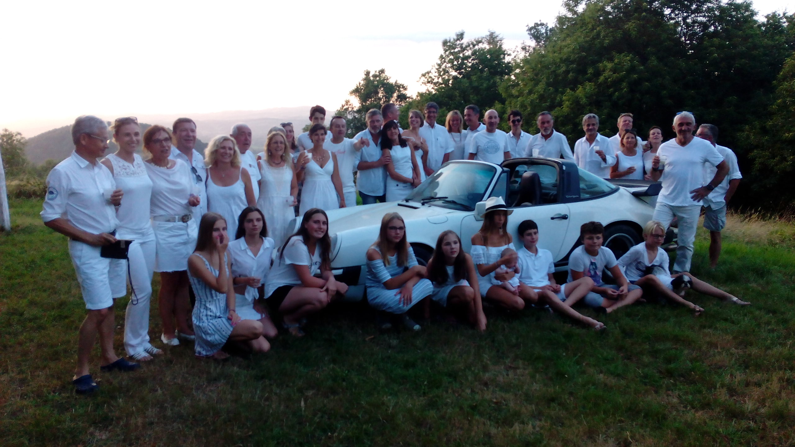Magnifique photo de groupe de la soirée blanche ..merci Tonton pour la belle auto....et même le chien avait assorti sa tenue ....au poil !!