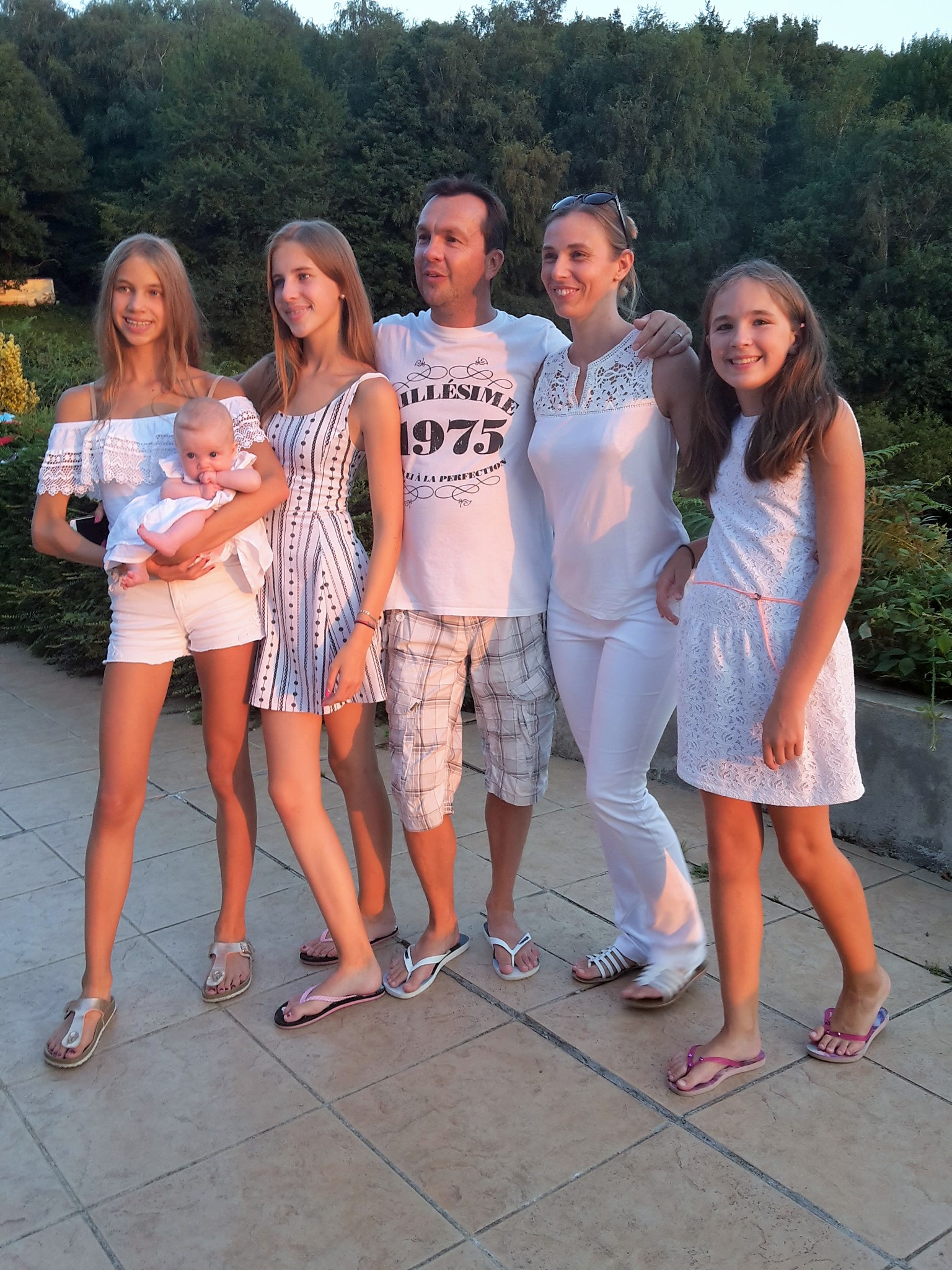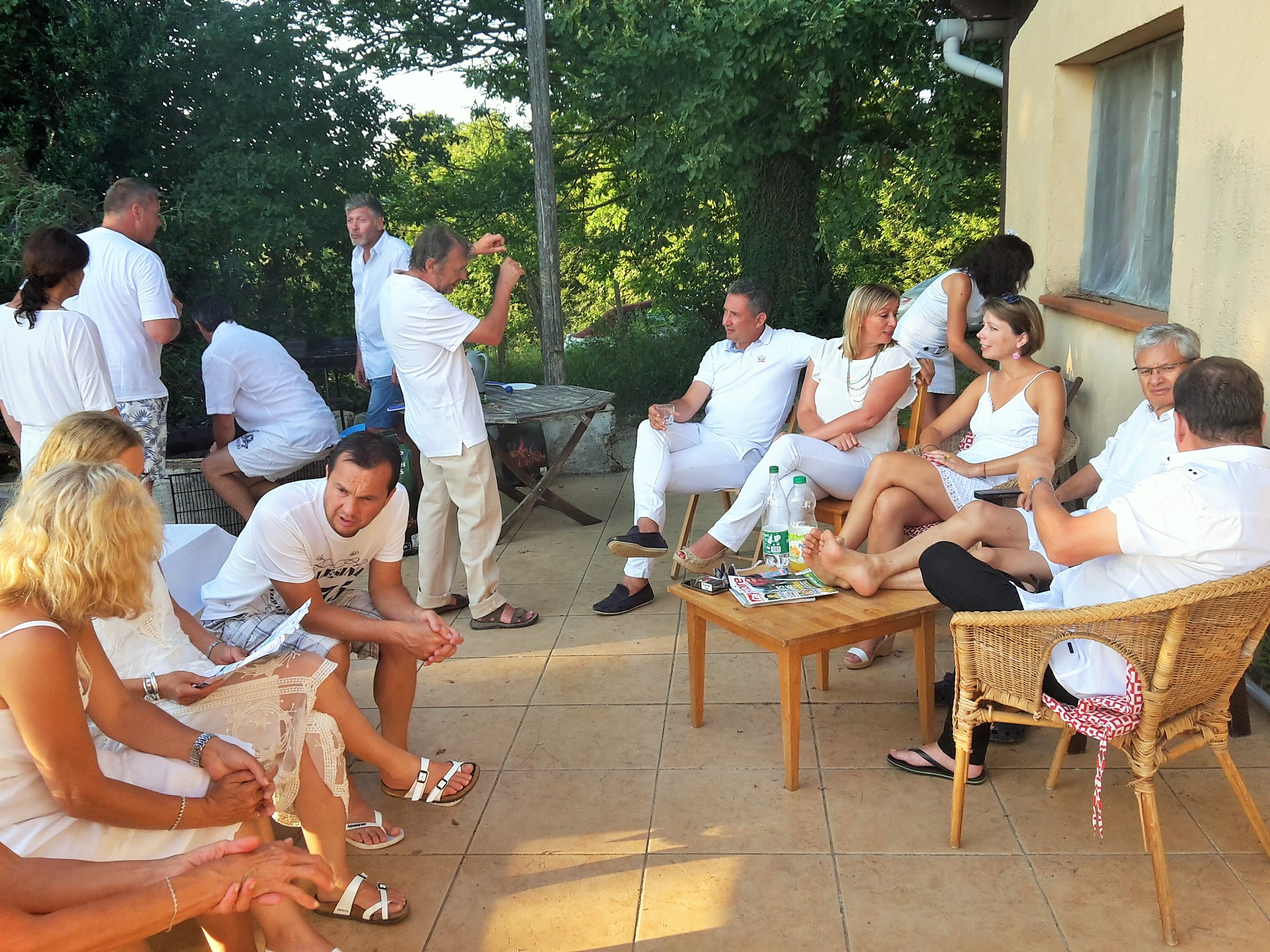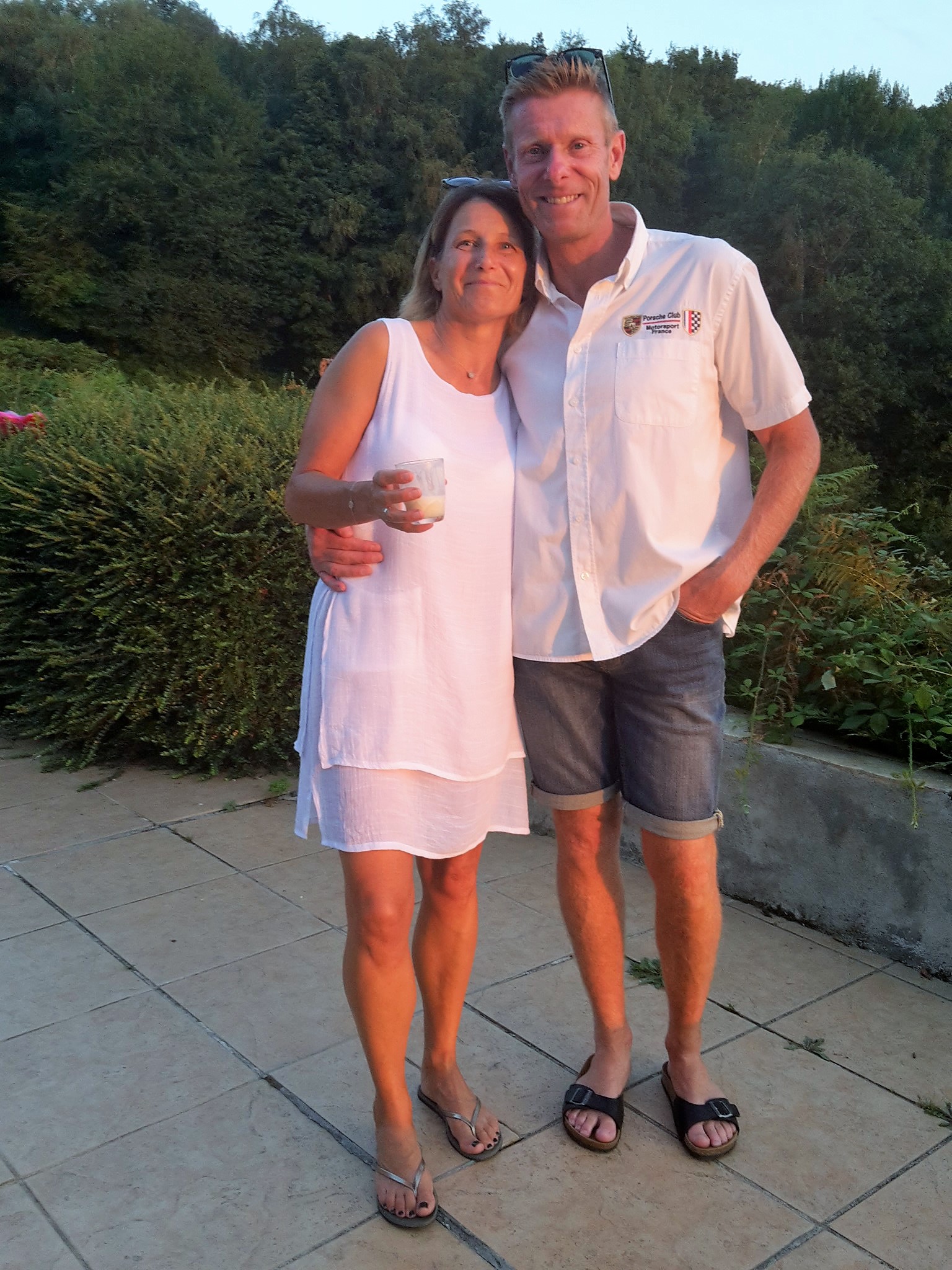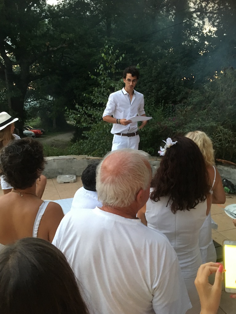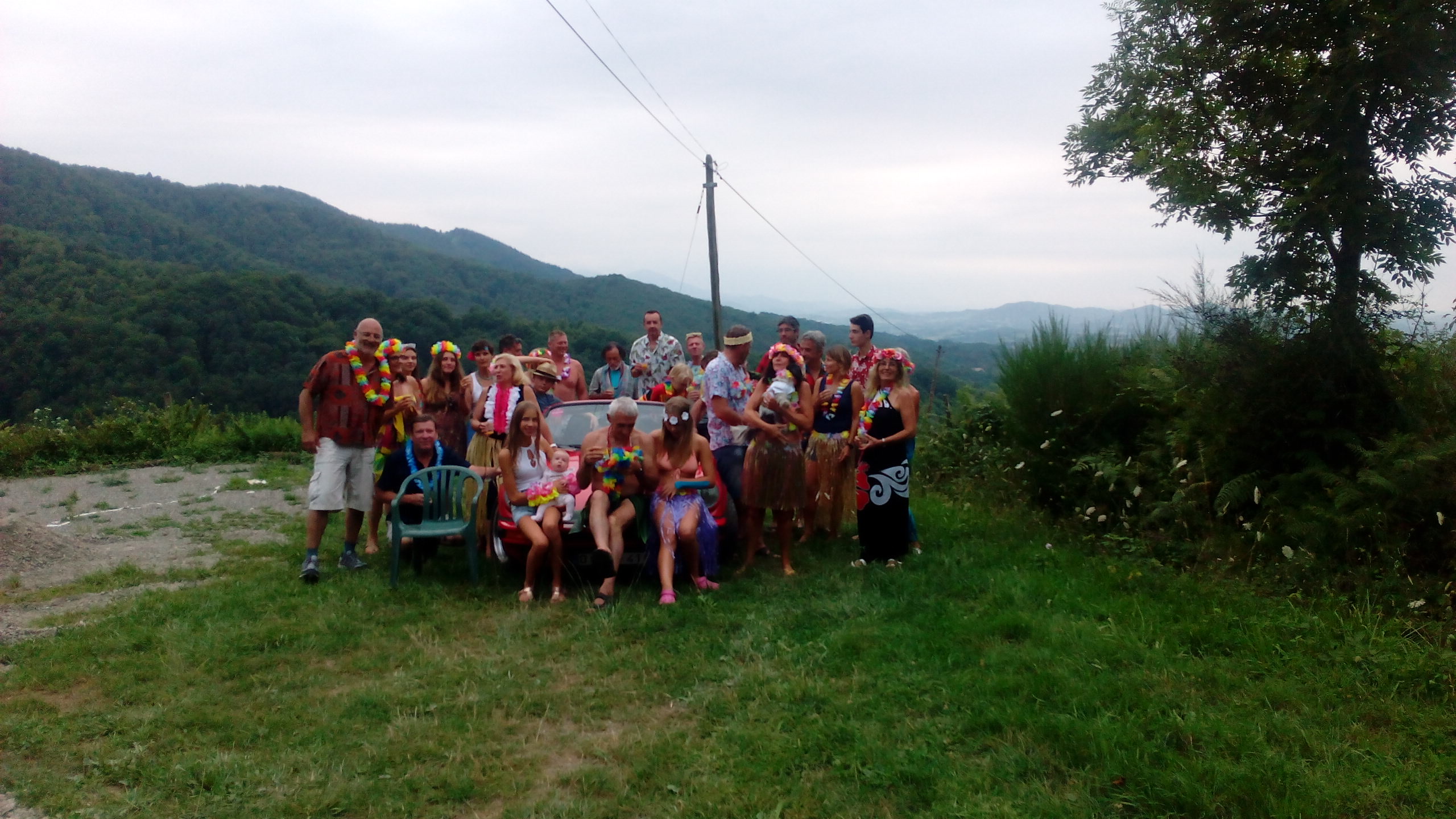 Magnifique photo de groupe de la soirée blanche ..merci Tonton pour la belle auto....et même le chien avait assorti sa tenue ....au poil !!