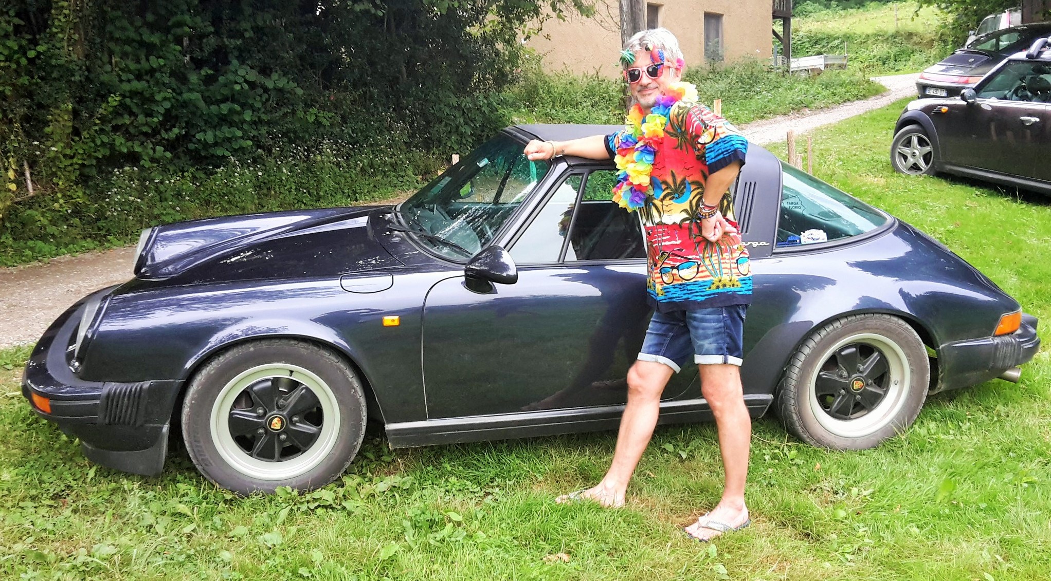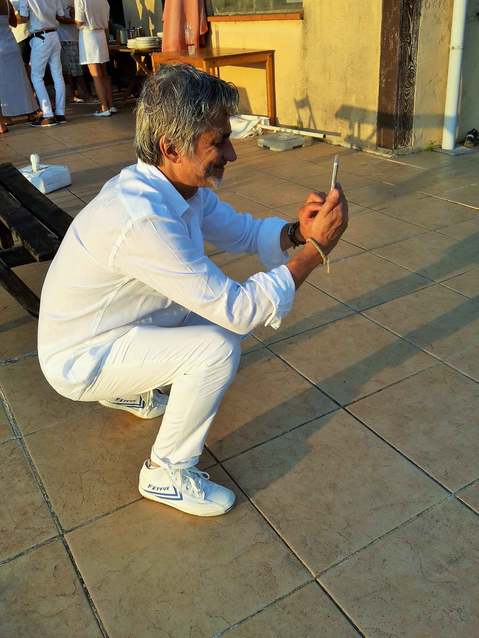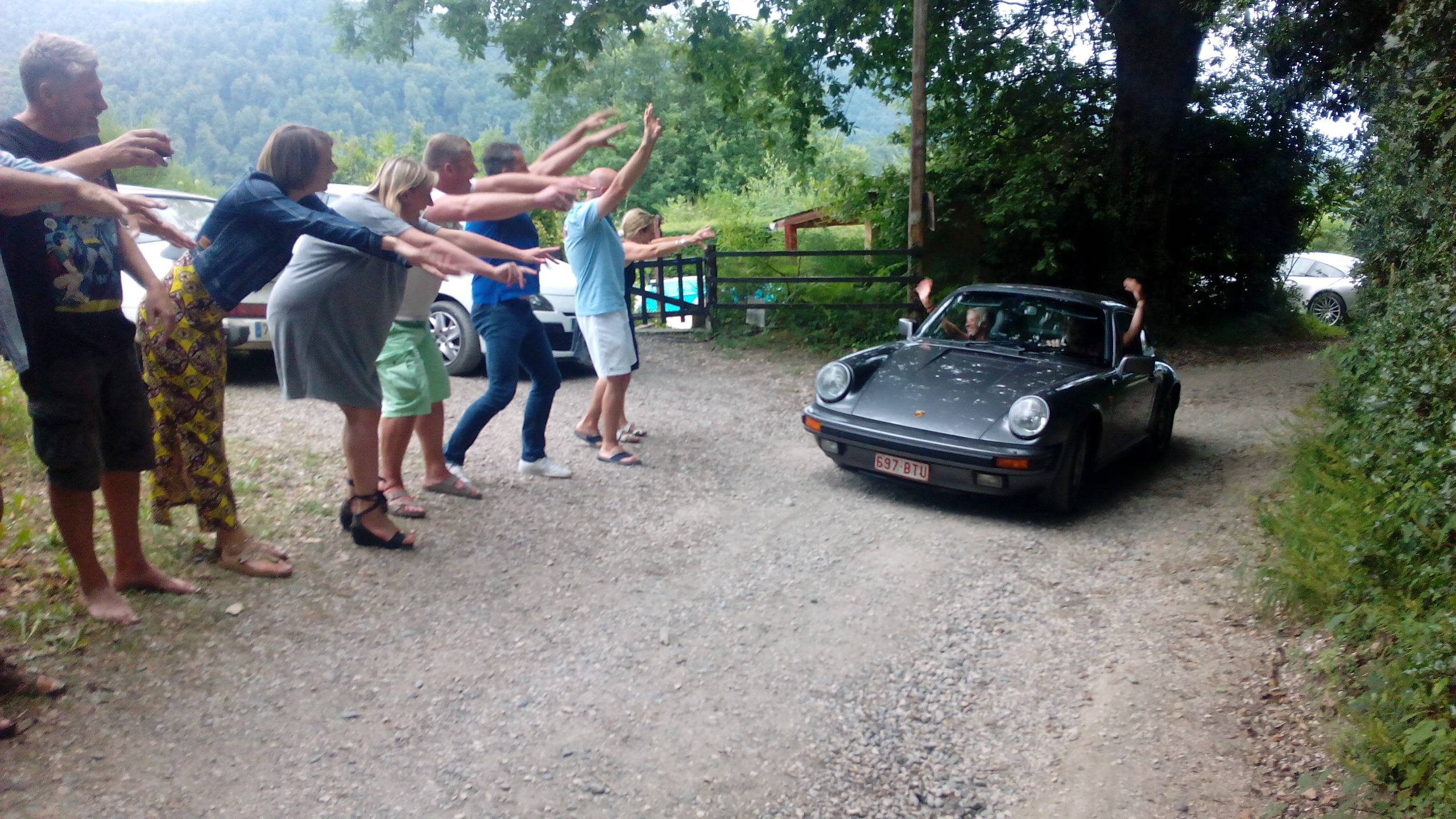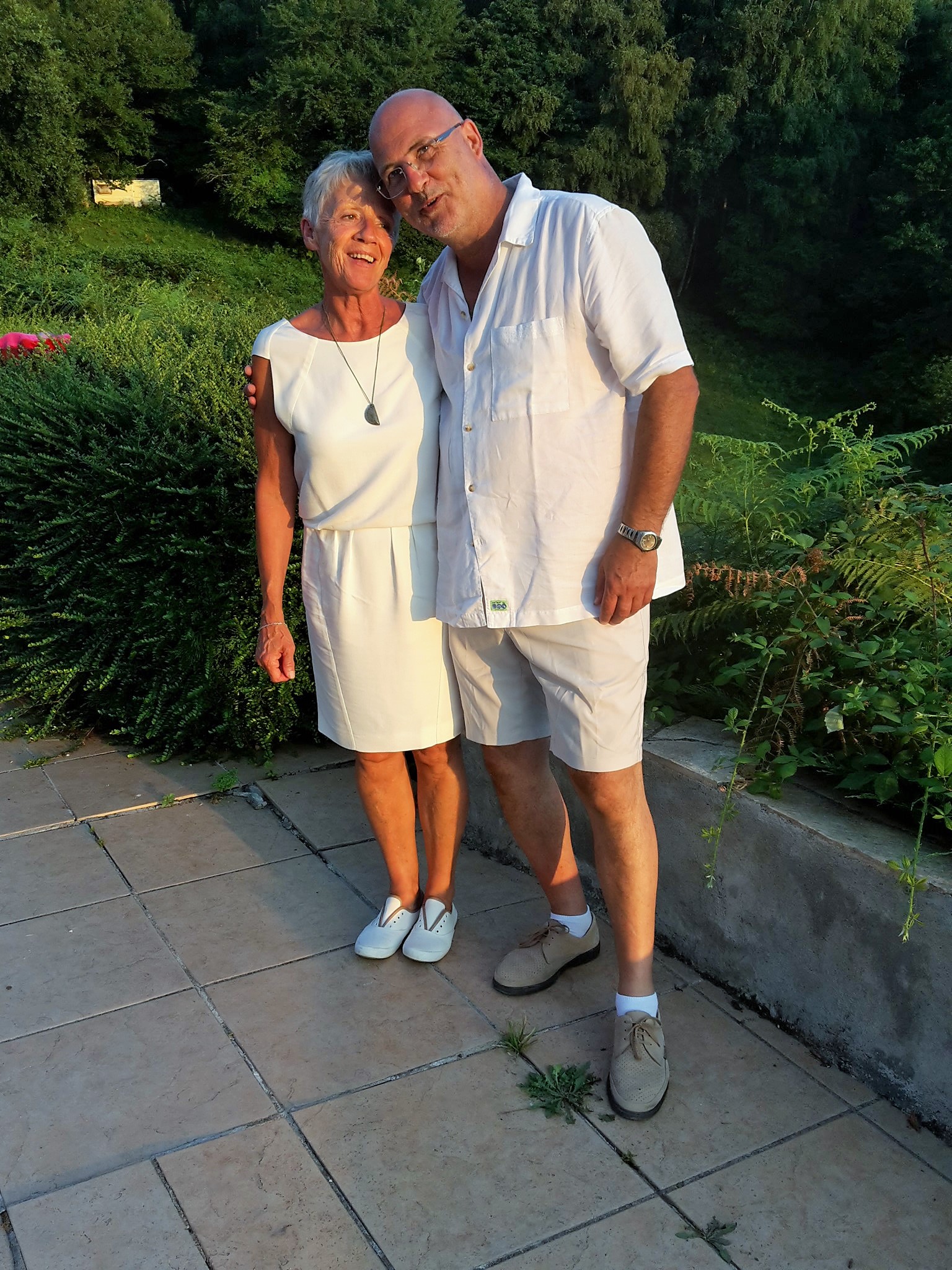 Magnifique photo de groupe de la soirée blanche ..merci Tonton pour la belle auto....et même le chien avait assorti sa tenue ....au poil !!